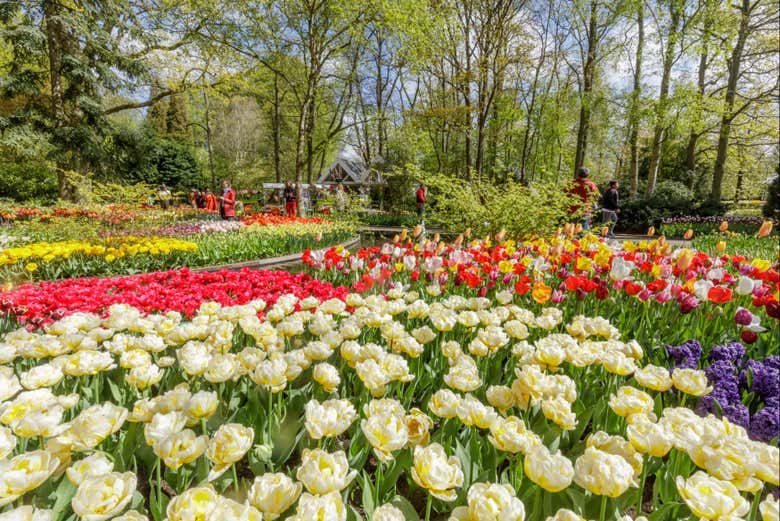 The Keukenhof Gardens is one of the largest flower parks in the world, with over 7 million flower bulbs planted annually. As you make your way through the park grounds, you'll admire more than just tulips. You'll be captivated by endless rows of hyacinths, daffodils, and lillies!